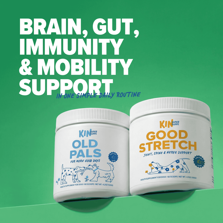 Good Days combines two formulas that support the key pillars of aging well: mind, gut, immunity, and mobility. Old Pals supports brain, immune, and gut health while Good Stretch supports joint, spine, and nerve function. When all these systems get consistent daily support, dogs show real improvements in overall quality of life.