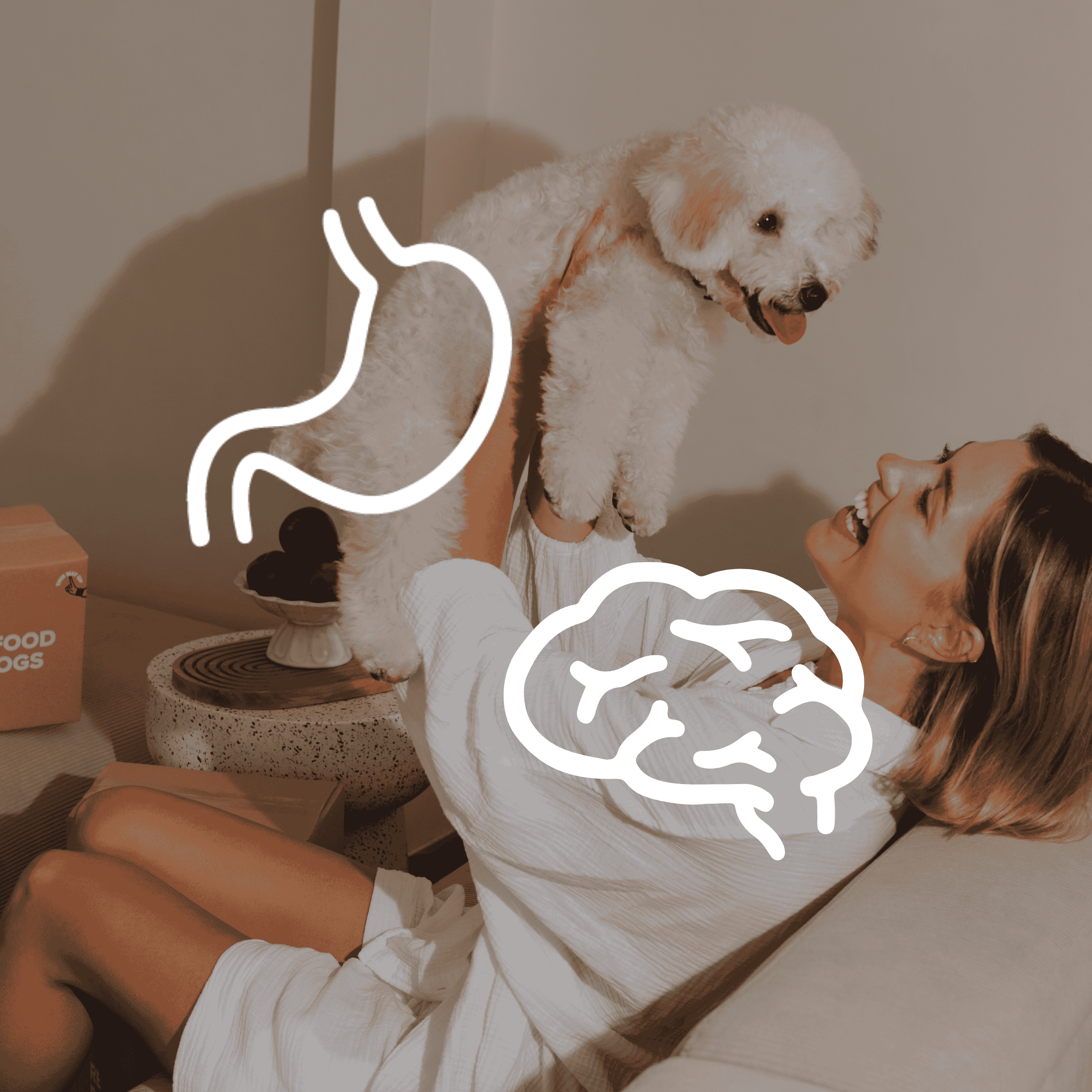 Ever notice your senior dog get more agitated when their stomach's not feeling great? That's not a coincidence. Their gut has more nerve cells than their spinal cord and it talks directly to their brain. Fix the gut and calm behavior follows.